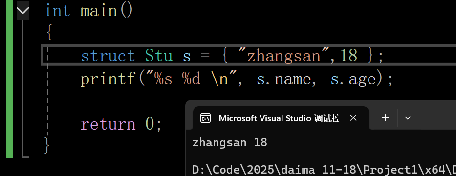 定义了一个学生结构体,包含姓名和年龄两个成员