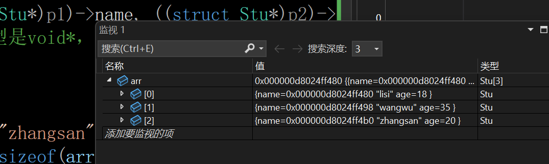 return strcmp(((struct Stu*)p1)->name, ((struct Stu*)p2)->name); //名字的比较,这里的 ->是结构体成员间接访问操作符