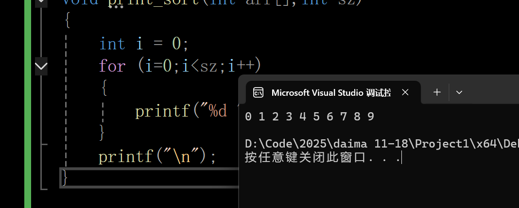 void print_arr(int arr[], int sz) //循环打印数组里面的元素