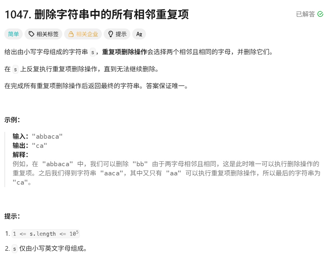 https://leetcode.cn/problems/remove-all-adjacent-duplicates-in-string/