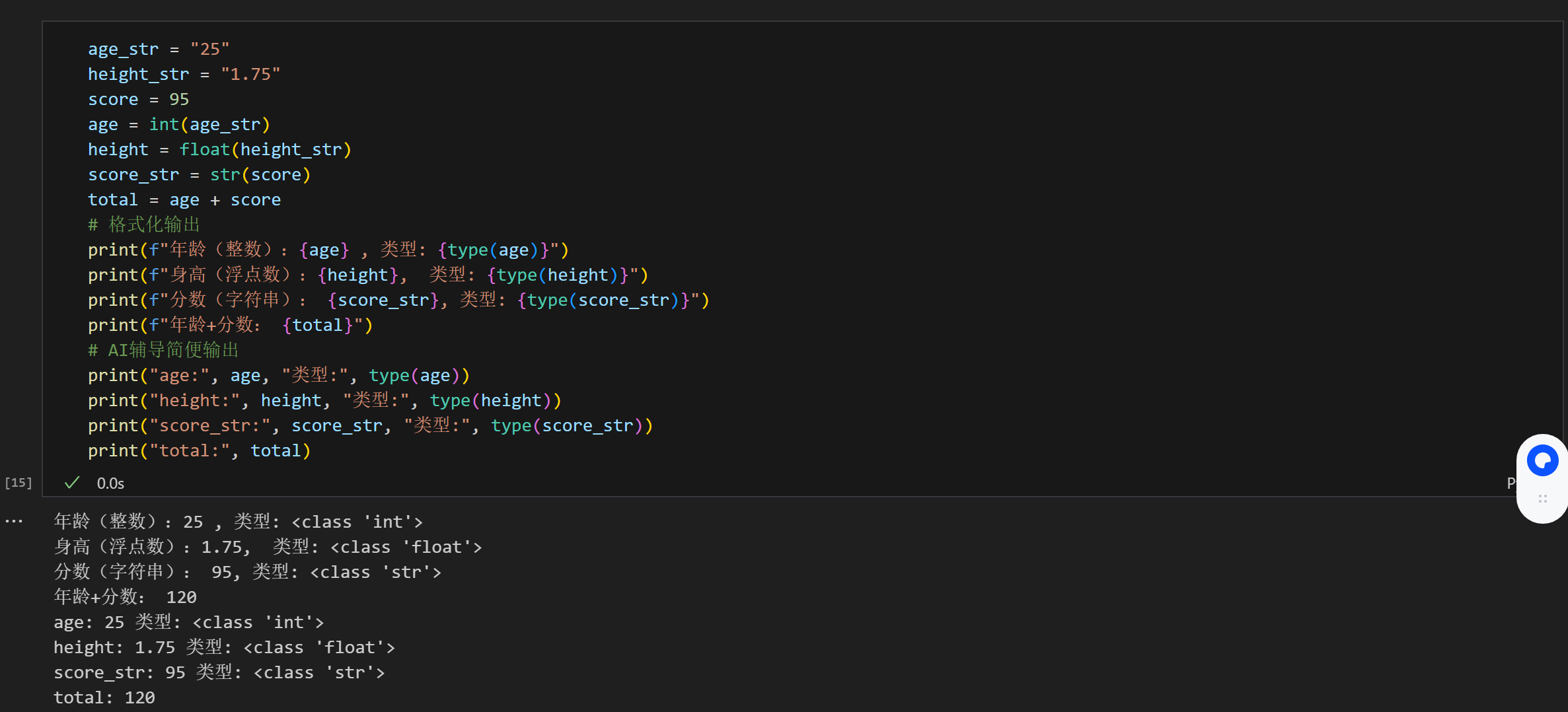 当使用 print("age:", age) 时,print 函数会自动将多个参数(这里是字符串 "age:" 和变量 age)用空格拼接后输出,底层会自动处理变量的类型转换(比如将整数 / 浮点数转为字符串)。