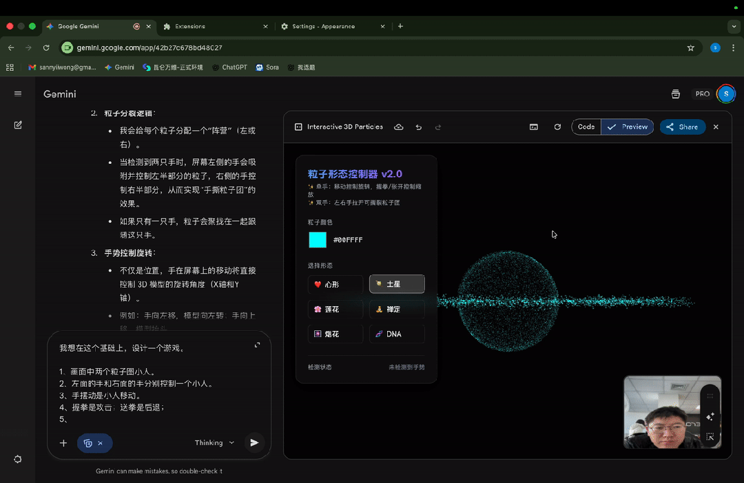 如果你想要一个结果(比如一个能玩的 3D 网页),用Gemini Canvas。