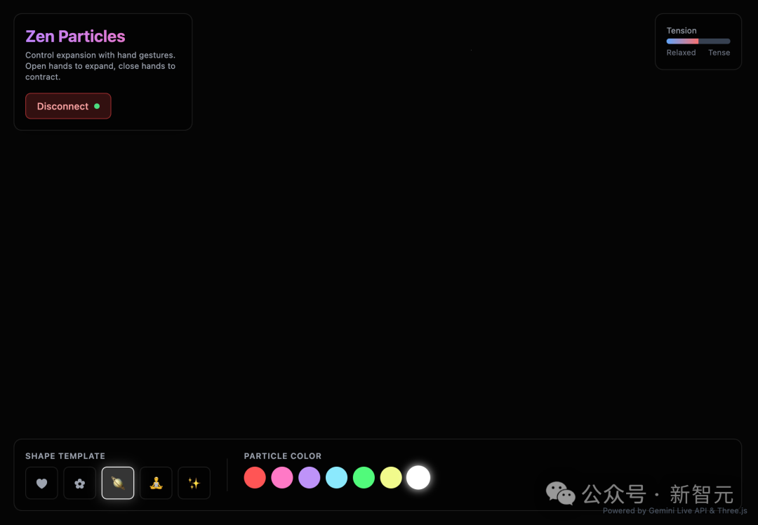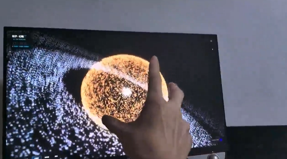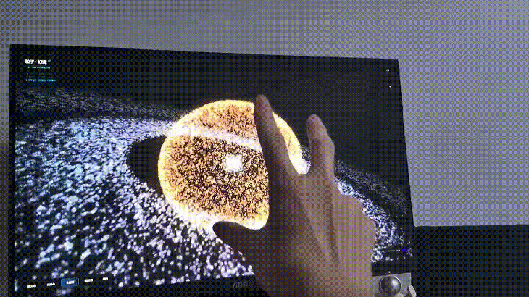 用户可以通过摄像头检测双手张合的手势来直接控制粒子群的缩放和扩散。