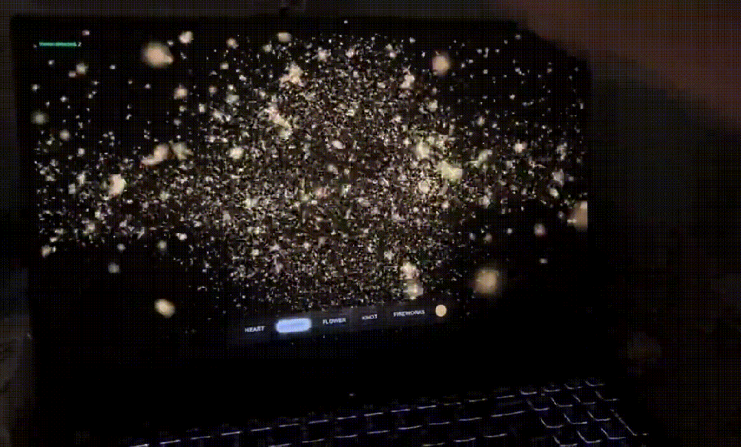1、通过摄像头检测双手的张合与握紧,控制粒子群的缩放与扩散。