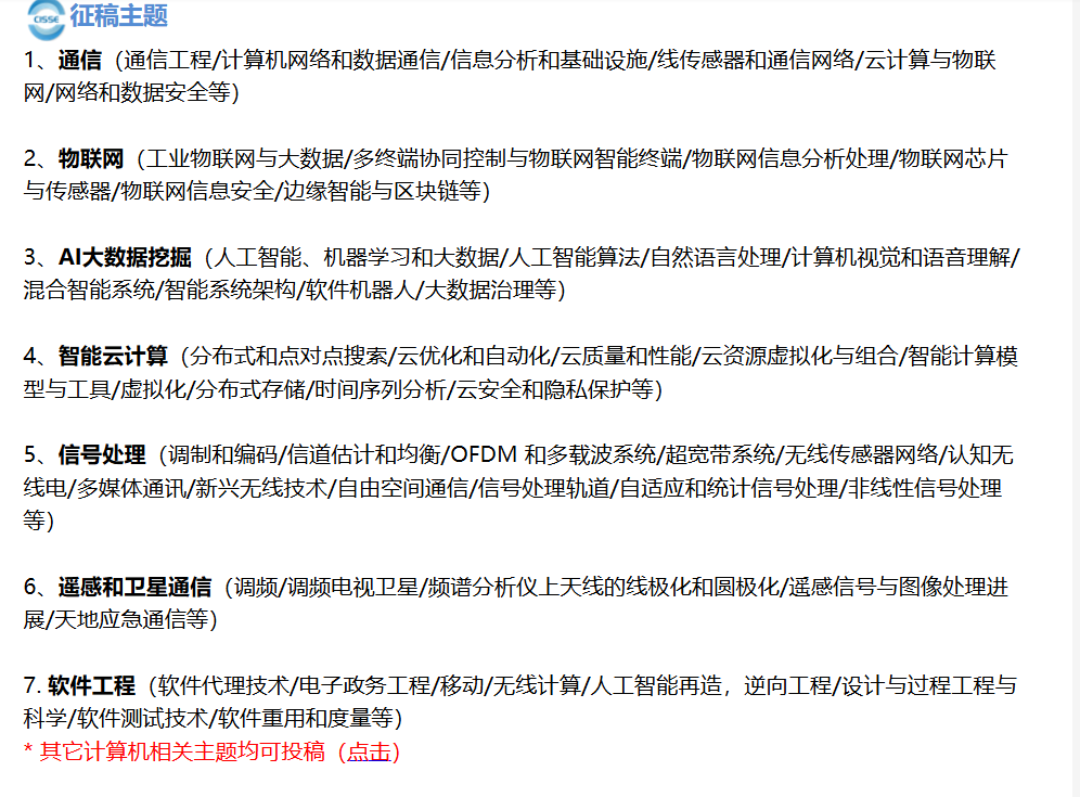 历经七届沉淀,CISSE 已成为通信、信息系统与软件工程领域兼具影响力与专业性的国际学术平台。无论是想发布最新研究成果、了解行业技术趋势,还是寻求国际合作与产业落地机会,CISSE 2025 都将是一次不可多得的契机。