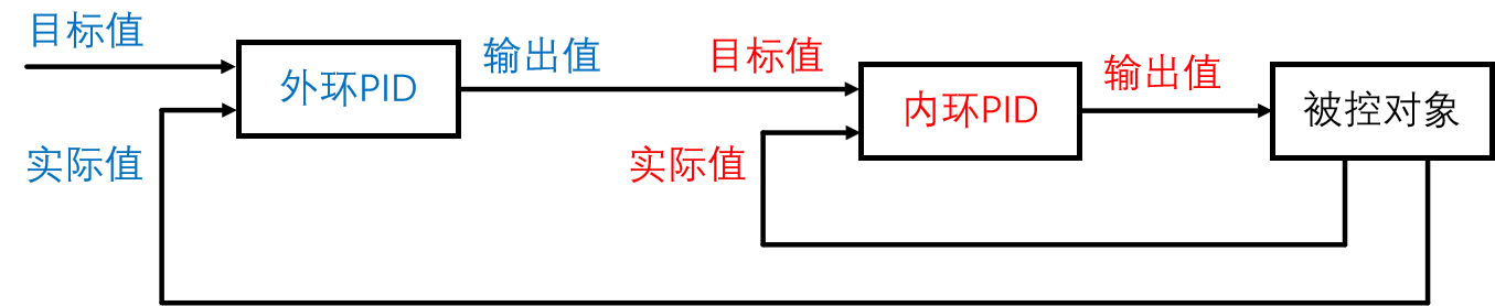 单环PID只能对被控对象的一个物理量进行闭环控制,而当用户需要对被控对象的多个维度物理量(例如:速度、位置、角度等)进行控制时,则需要多个PID控制环路,即多环PID,多个PID串级连接,因此也称作串级PID