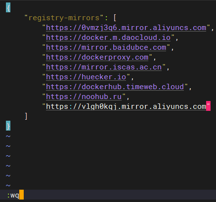 "registry-mirrors": [ "https://mirror.aliyuncs.com", "https://hub-mirror.c.163.com" ]