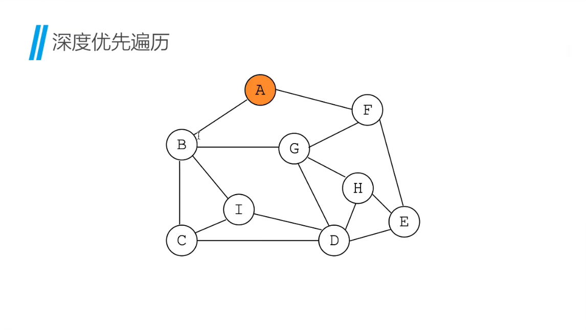 想象你是个侦探,要走访所有嫌疑人(节点)。你从 A 家出发,进门就问:“你认识谁还没被问过?”A 说 “我认识 B 和 F”,你二话不说先冲去 B 家(不纠结选谁,先选一个走到底)。到了 B 家,B 说 “我认识 C、G、I”,你又扎进 C 家…… 就这么 “一条路走到头”,直到某个节点的所有朋友都被问过了,再回头找下一个没走访的分支。