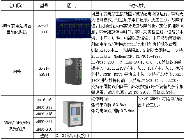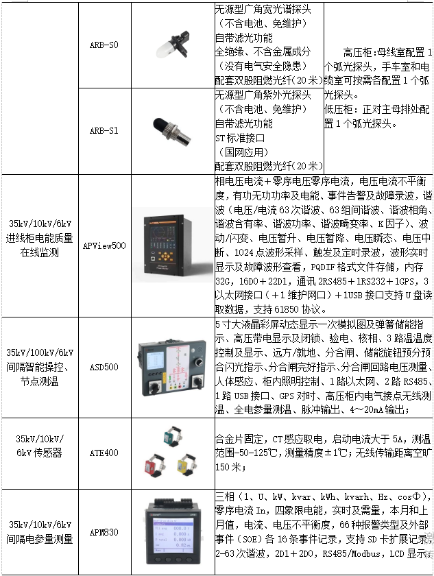 例如,弧光保护装置(型号ARB6系列)通过无源型广角探头检测故障电弧,配套阻燃光纤传输信号,适用于高压柜与低压柜的母线室与电缆室。