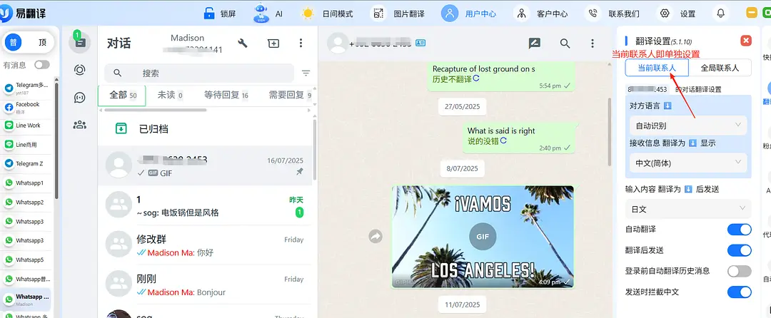3.与好友聊天自动翻译,无需复制粘贴,输入内容,一键回车即可自动翻译发送,同时支持200+种语言的实时翻译;支持好友聊天独立语言设置,不同国家的好友,设置单独不同的语言,比如朋友甲使用的是德语,朋友乙使用的是日语。我们针对每个好友单独设置后,下次聊天不用再次设置