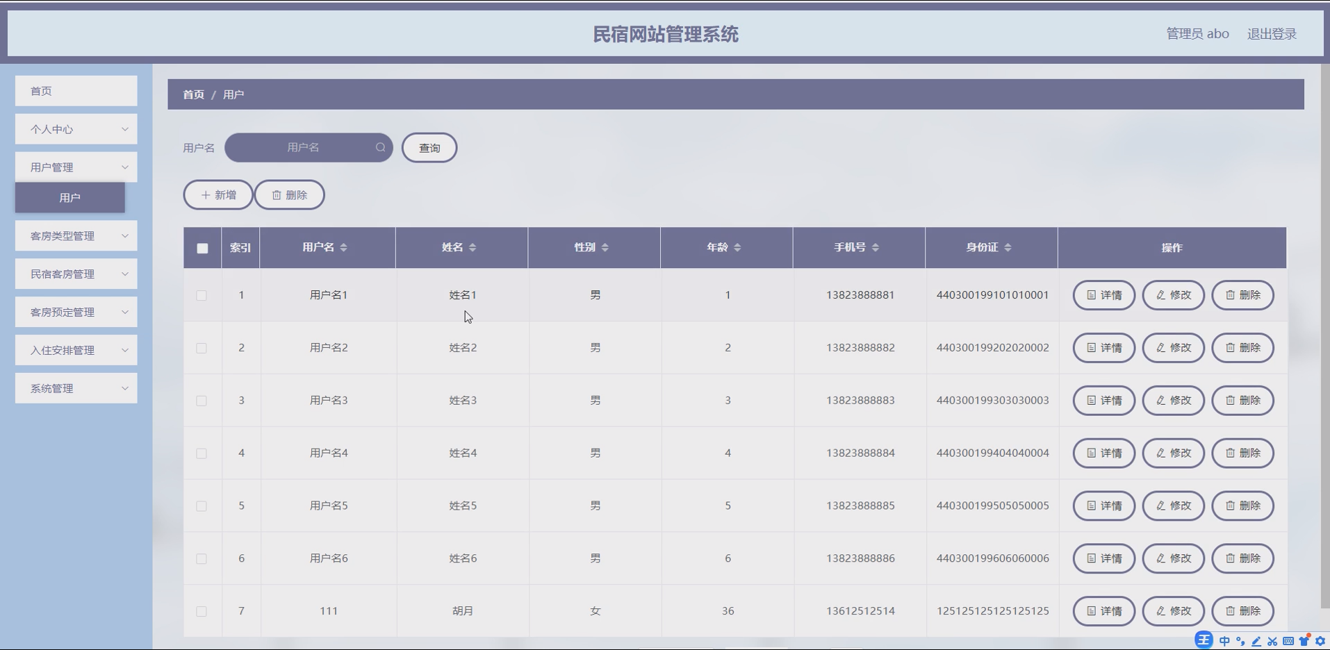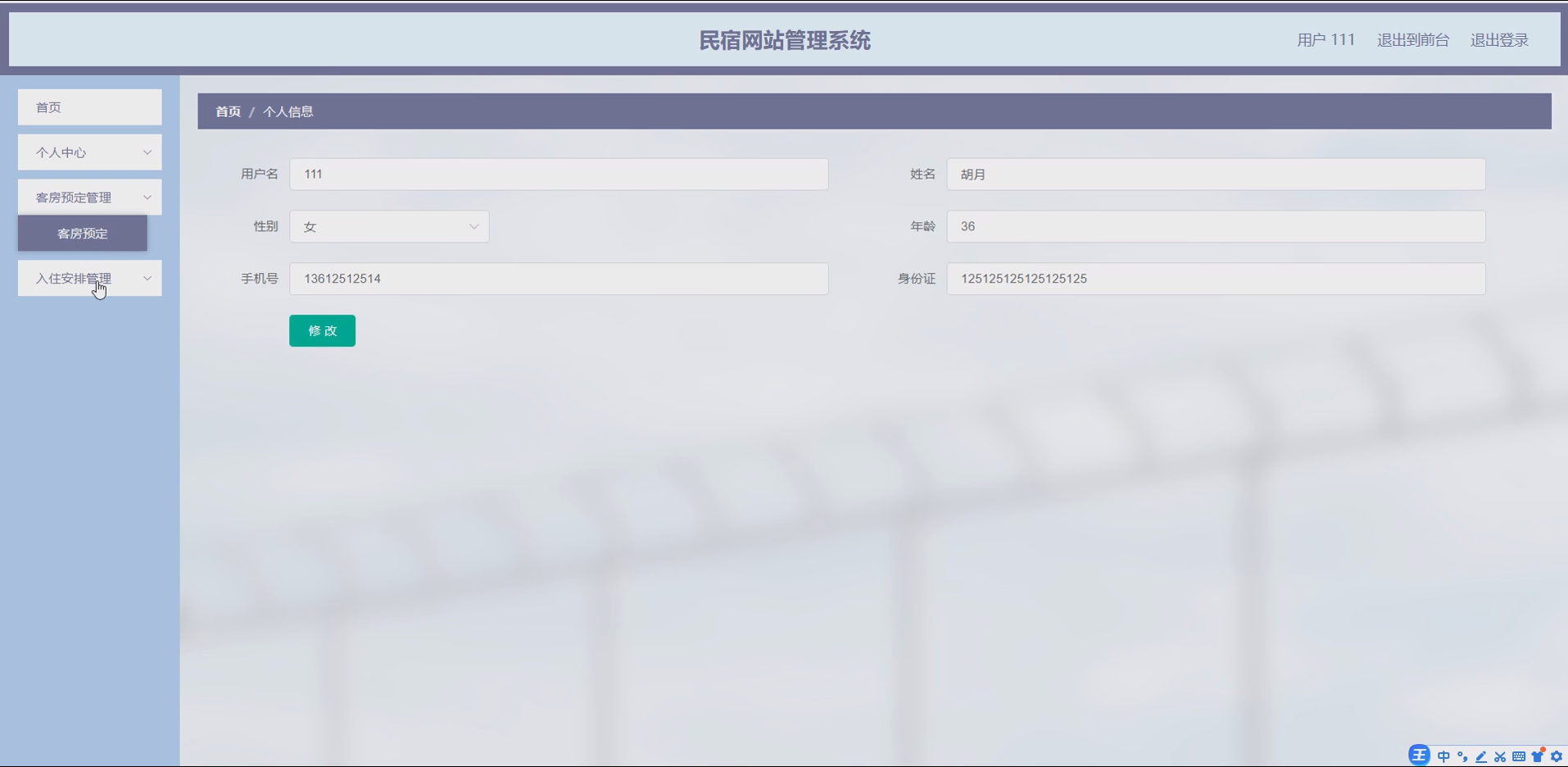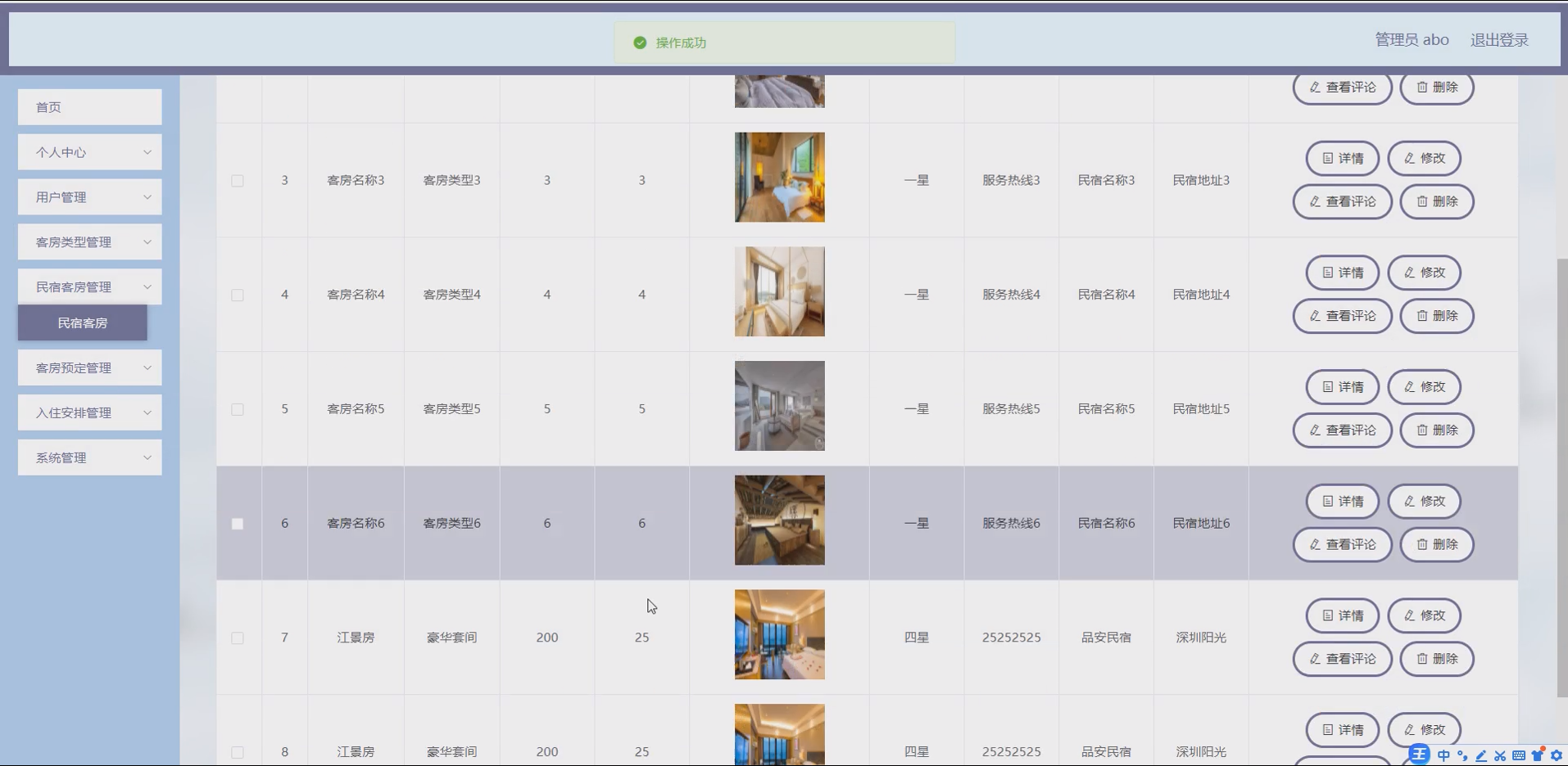 完成一套基于SSM框架的民宿网站管理系统,实现用户管理、客房类型管理、民宿客房管理、客房预定、入住安排五大核心功能模块,系统能够稳定运行,满足中小型民宿的日常运营需求。