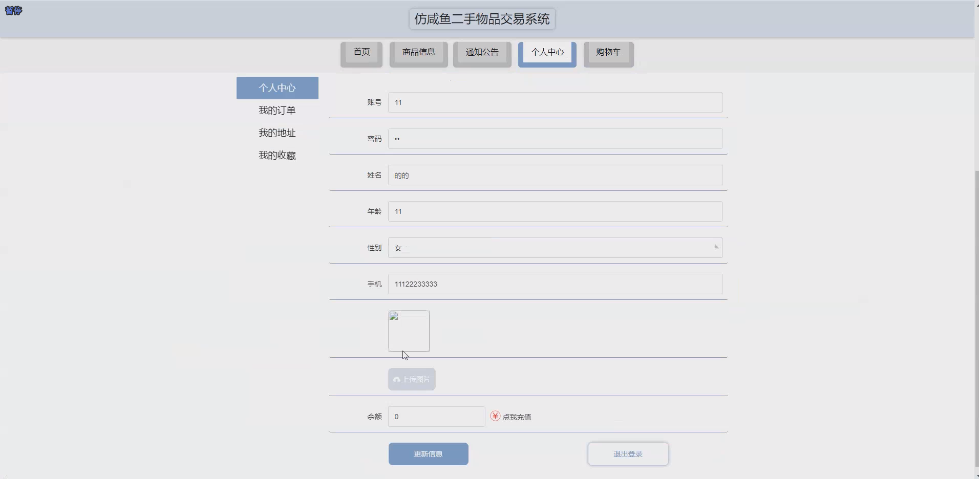 - 用户模块:实现用户注册(数据验证,如用户名唯一性、密码复杂度)、登录(账号密码验证、记住密码功能)、个人信息管理(修改昵称、手机号、邮箱、密码,上传头像)、订单管理(查看订单列表、订单详情,取消订单、确认收货)、发布闲置商品(填写商品信息、上传商品图片,选择商品分类)等功能。