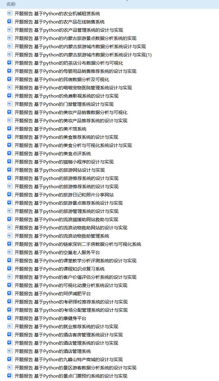 以上是H同学的毕业设计答辩过程,如果你现在还没有参加答辩,还是开题阶段,已经选好了题目不知道怎么写开题报告,可以下面找找有没有自己符合自己题目的开题报告内容,列表中的开题报告都是往届真实的开题报告,可发送使用或参考。