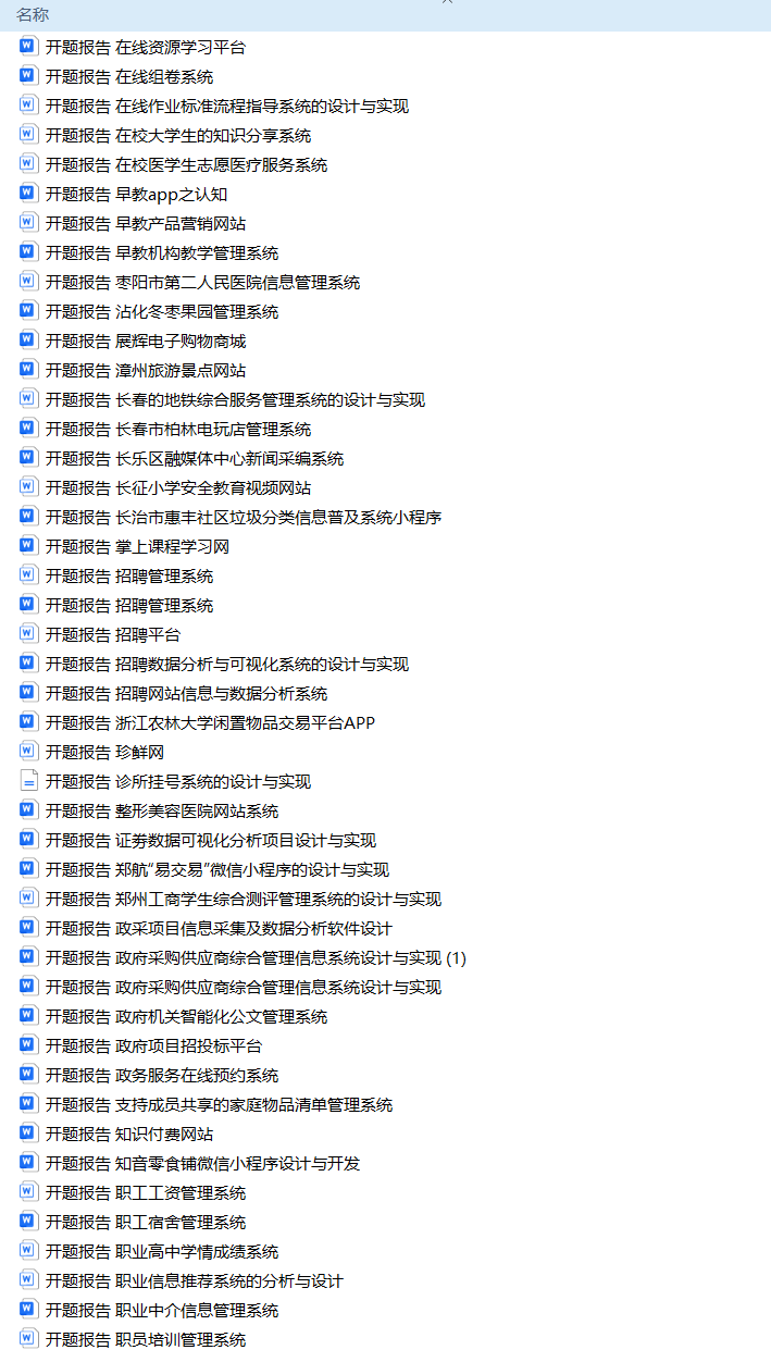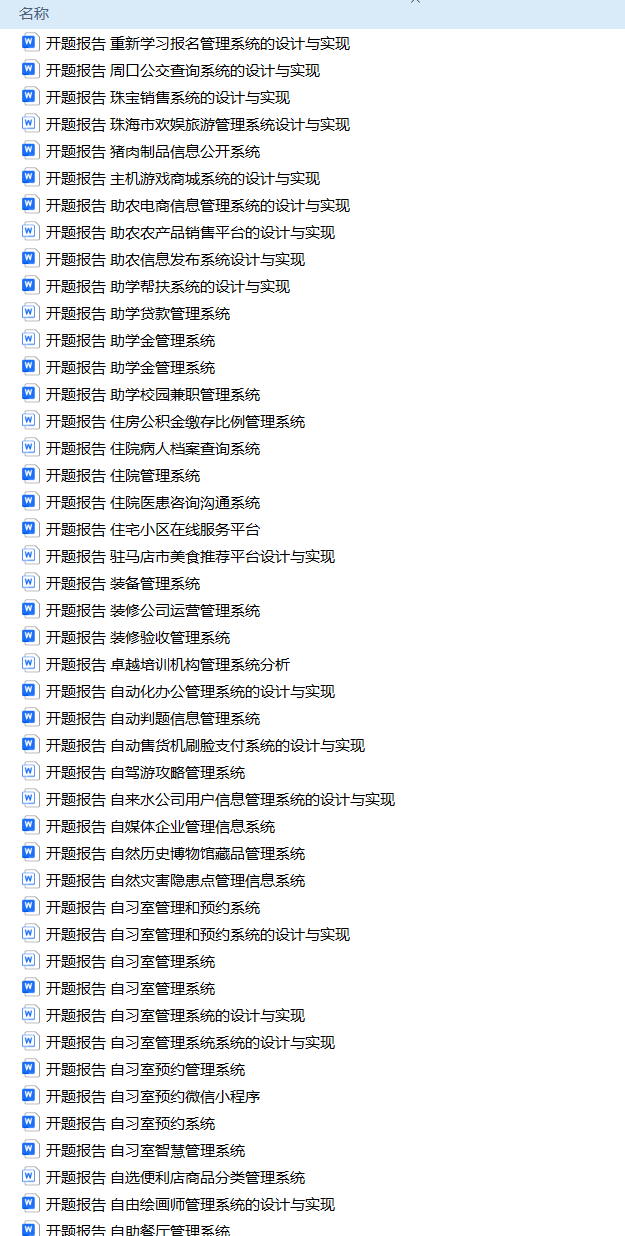 以上是H同学的毕业设计答辩过程,如果你现在还没有参加答辩,还是开题阶段,已经选好了题目不知道怎么写开题报告,可以下面找找有没有自己符合自己题目的开题报告内容,列表中的开题报告都是往届真实的开题报告可参考。