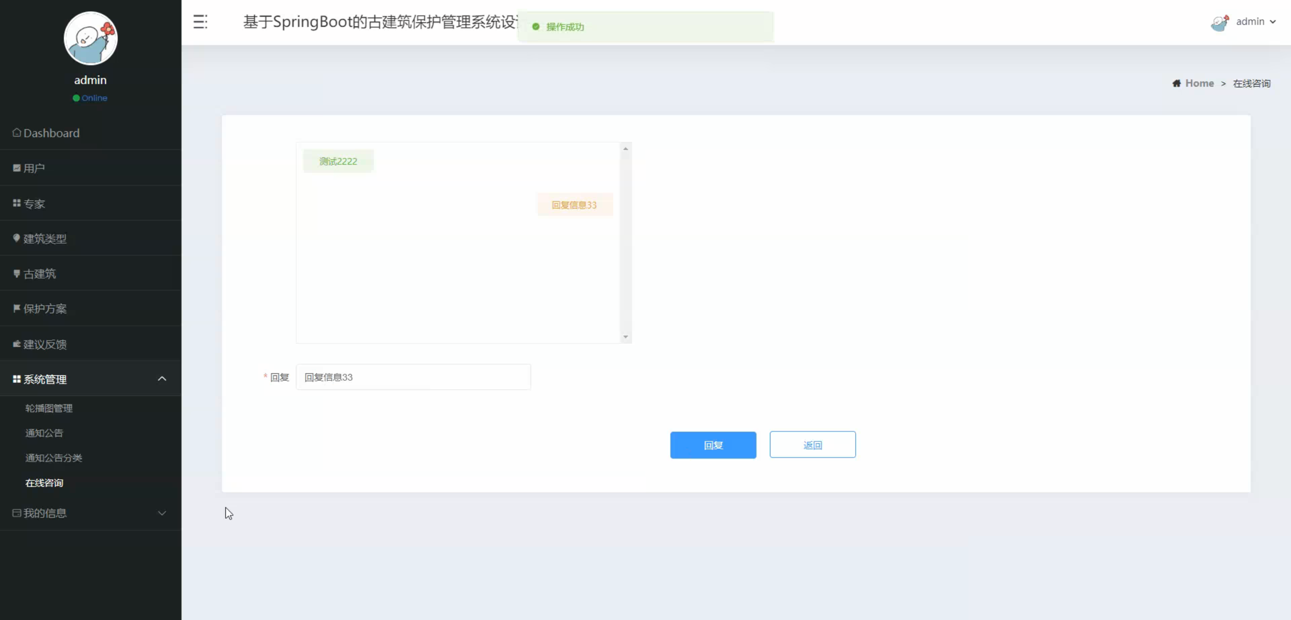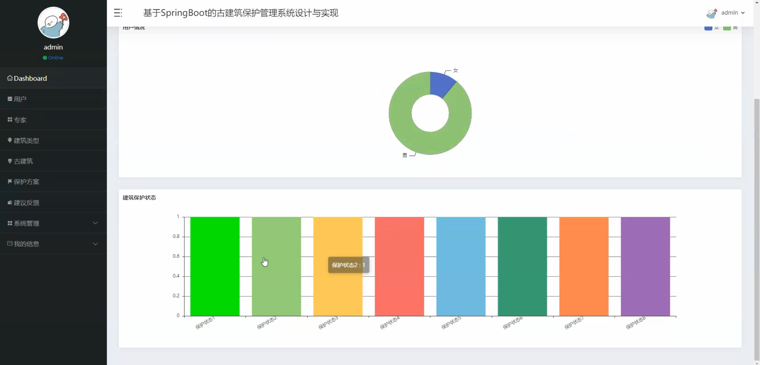 当前古建筑保护管理存在信息碎片化(纸质档案易丢失、电子记录分散)、保护流程不规范(巡检记录不及时、维修进度难跟踪)、资源共享不足(文物部门、研究机构、公众间信息壁垒)等问题。本课题旨在基于 Spring Boot 框架,设计并实现一套集 “古建筑信息管理、保护巡检、维修跟踪、公众科普” 于一体的古建筑保护管理系统,实现古建筑保护管理的数字化、规范化与智能化,为文物保护部门提供高效的管理工具,同时为公众搭建了解古建筑的科普平台。