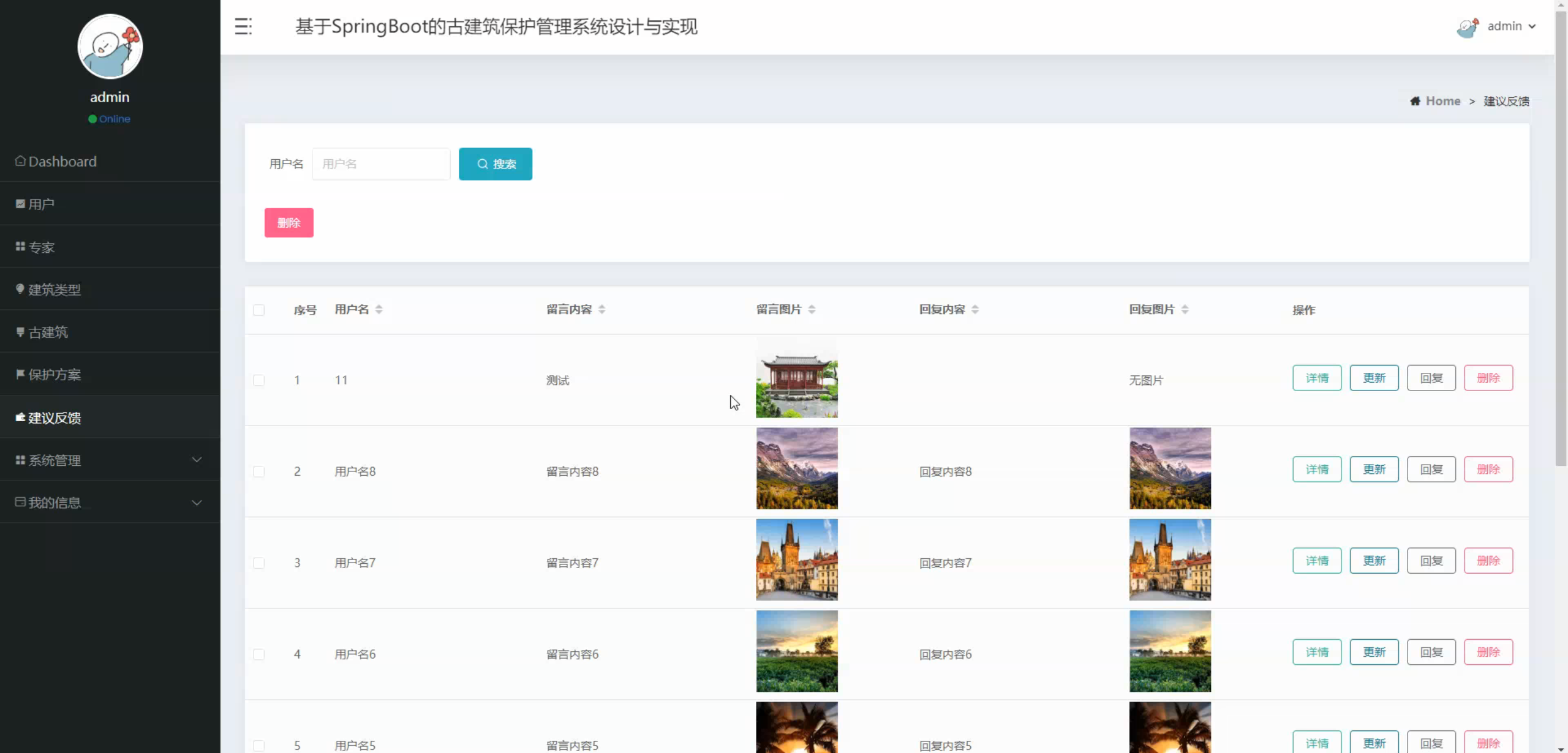 - (2)保护反馈:公众发现古建筑存在异常(如游客刻画、构件损坏)时,可通过系统提交 “反馈建议”(含文字描述、现场照片、位置信息),由文物管理员审核后跟进;