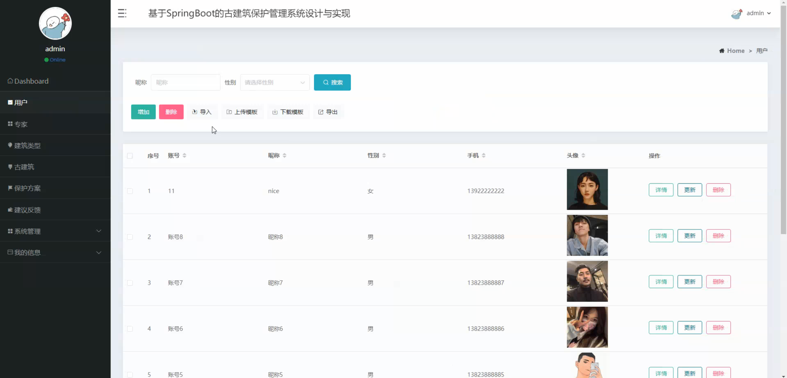 - 理论意义:本系统将软件工程(Spring Boot、前后端分离架构)与古建筑保护学交叉融合,丰富 “数字化文物保护” 领域的技术实践案例,为后续同类系统(如古遗址、近现代文物管理系统)的开发提供可借鉴的架构设计与功能模块参考。