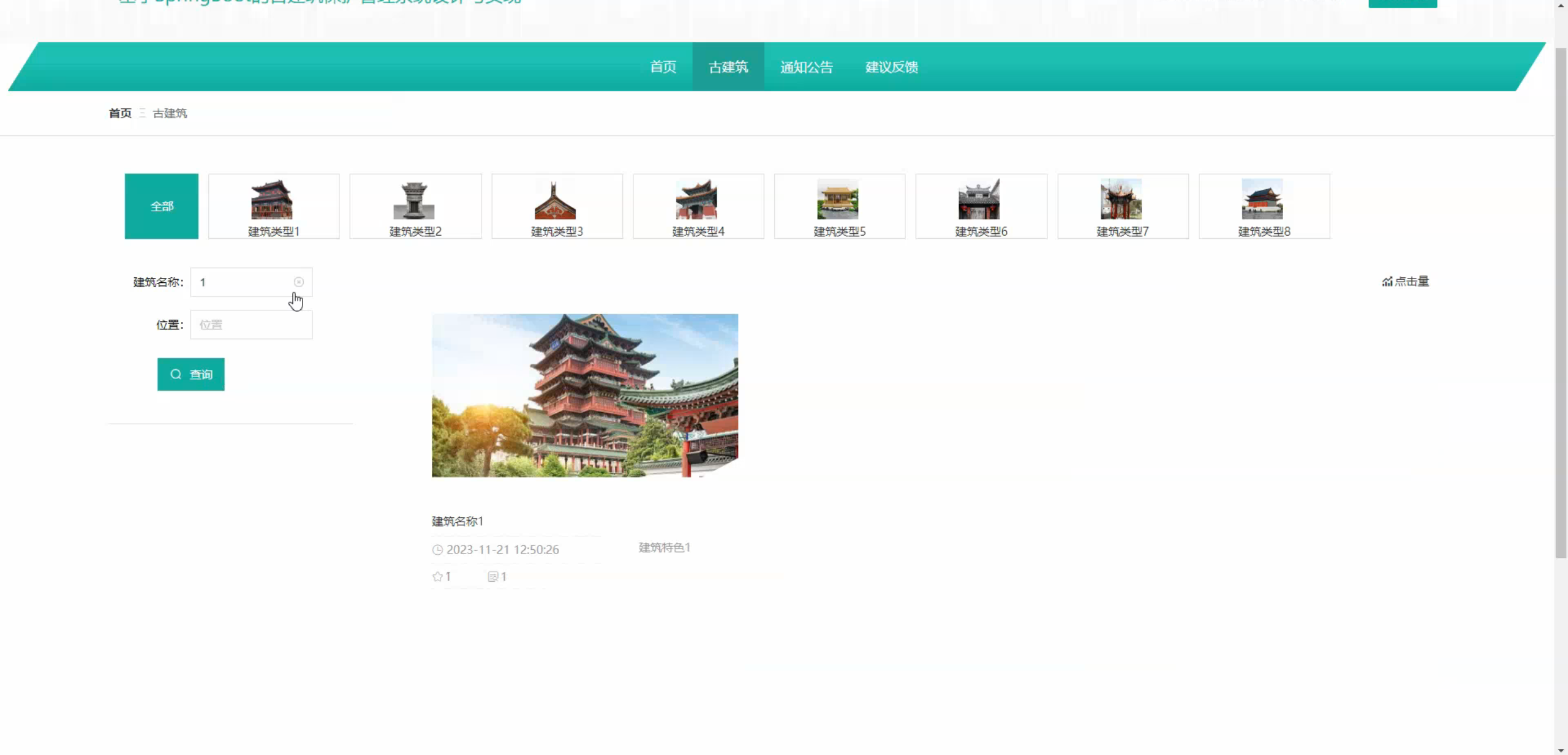 - (1)古建筑科普:浏览系统开放的古建筑基础信息(历史背景、文化价值、开放时间),查看无涉密的巡检照片(如外观修复后的状态),支持按 “地区”“年代” 筛选古建筑;