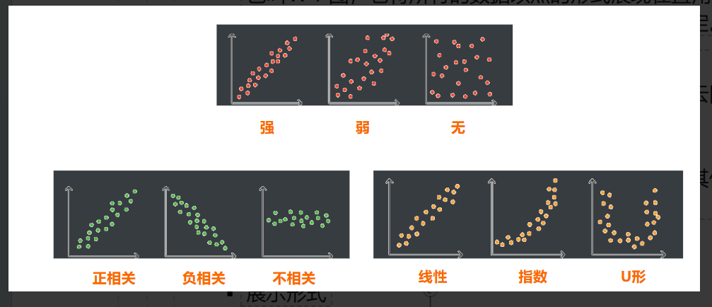 - 相关(数值间关联):散点图、指标看板、树图、矩阵树图、来源去向图