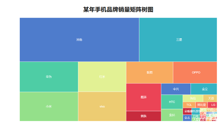| 矩阵树图 | 色块标签,色块大小 | 扇区标签仅1个维度且维度值≤12;扇区角度仅1个度量 |