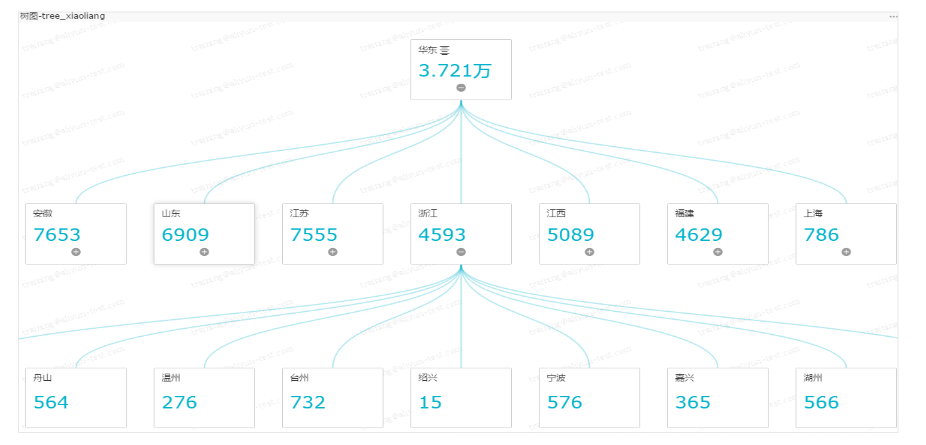 | 树图 | 树节点标签,树节点指标 | 树节点标签至少2个维度;树节点指标至少1个度量 |