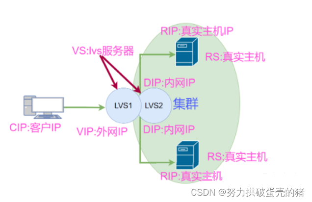 Linux虚拟服务器,通过虚拟IP来接受请求,通过一定的方法(由LVS的模式决定)转发到对应的real server(RS)实际服务器,达到流量分发、负载均衡的目的。