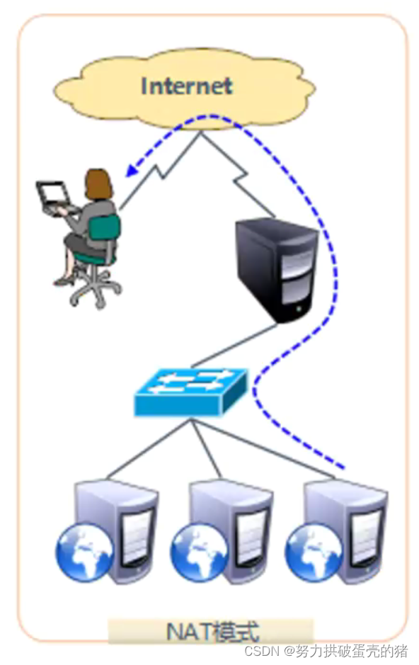 ●采用开放式的网络结构,负载调度器仅作为客户机的访问入口,各节点通过各自的Internet连接直接回应客户机,而不再经过负载调度器