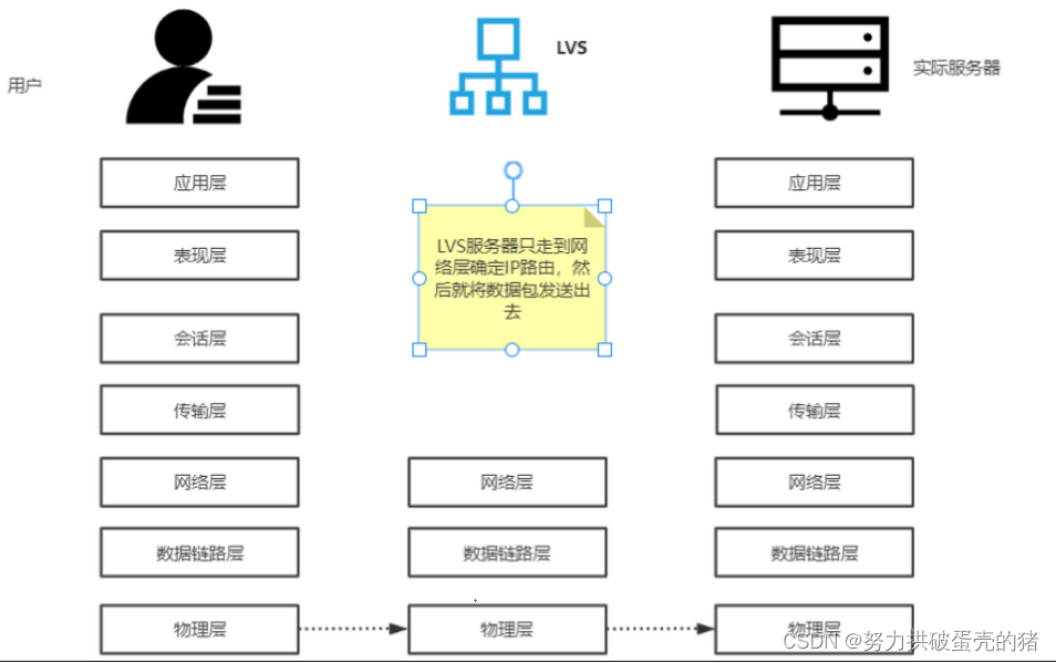 LVS的实现只用到了OSI的底三层,不同的LVS模式,采用的方法不同。由于LVS的转发只涉及到OSI的底层协议。如TCP协议通讯,LVS不与client端建立TCP连接(可以理解成省去了TCP的三次握手),直接与real server建立连接,LVS只做数据包的转发。对比传统的七层,作用于应用层的负载均衡器(如Nginx)有着显著的性能优势。