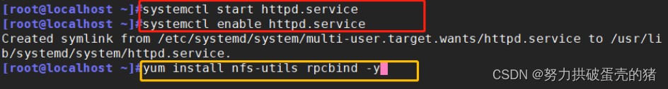 yum install nfs-utils rpcbind -y 提供远程调用服务