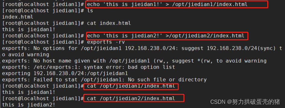 echo 'this is jieidan1!' > /opt/jiedian1/index.html