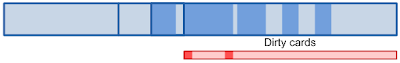 Principle of dirty card write-barrier is very simple. Each time when program modifies reference in memory, it should mark modified memory page as dirty. There is a special card table in JVM and each 512 byte page of memory has associated byte in card table.