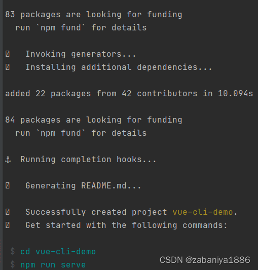 这是 vue-cli 创建 vue 项目的最后一个界面: