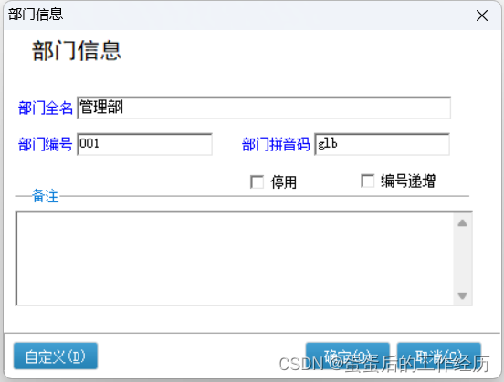 5、部门信息:添加公司部门信息(财务部、仓储部、采购部、销售部)。