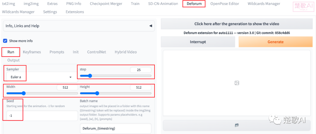 3. 安装完成后重启SD,你就会在标签栏里看到的Deforum标签,如下图所示