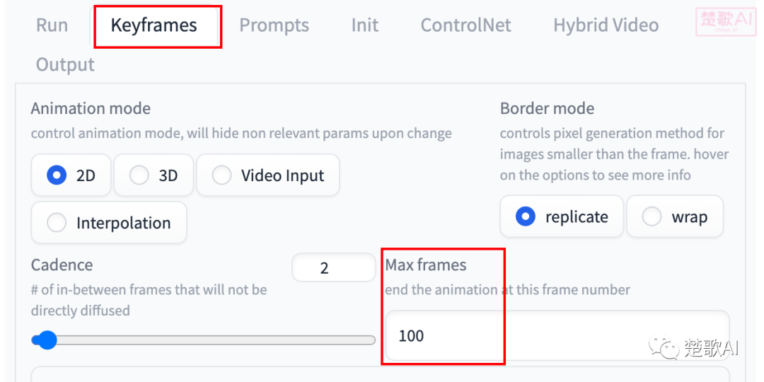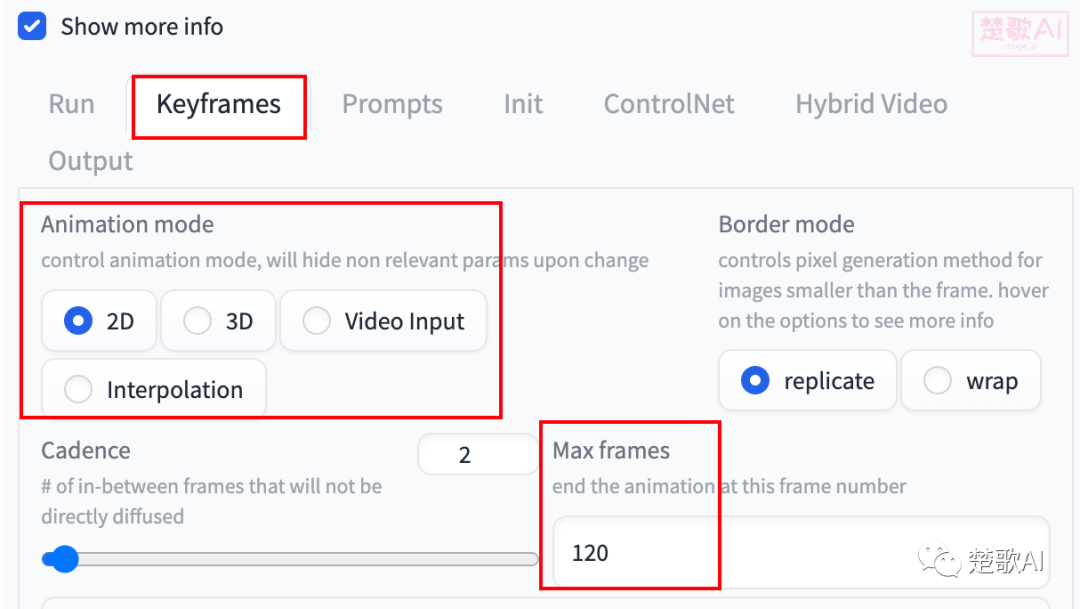 Max frames:更改最大帧数,帧数越多,视频时长越长。当然,显卡燃烧的也越快,所以不推荐一次性生成过长的视频,可以连续生成多个短视频,然后用剪辑工具拼接在一起。
