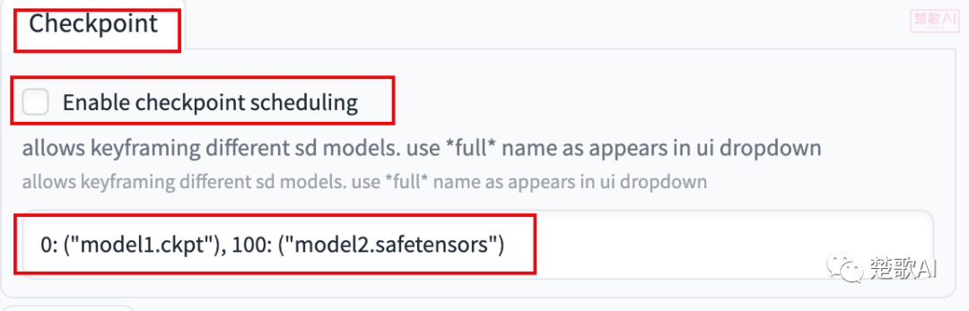 如上图例子中,第0帧开始采用model1模型,从第100帧开始更换为model2模型,这就支持我们比如从真人转动漫,或从动漫转真人,有个转场的效果