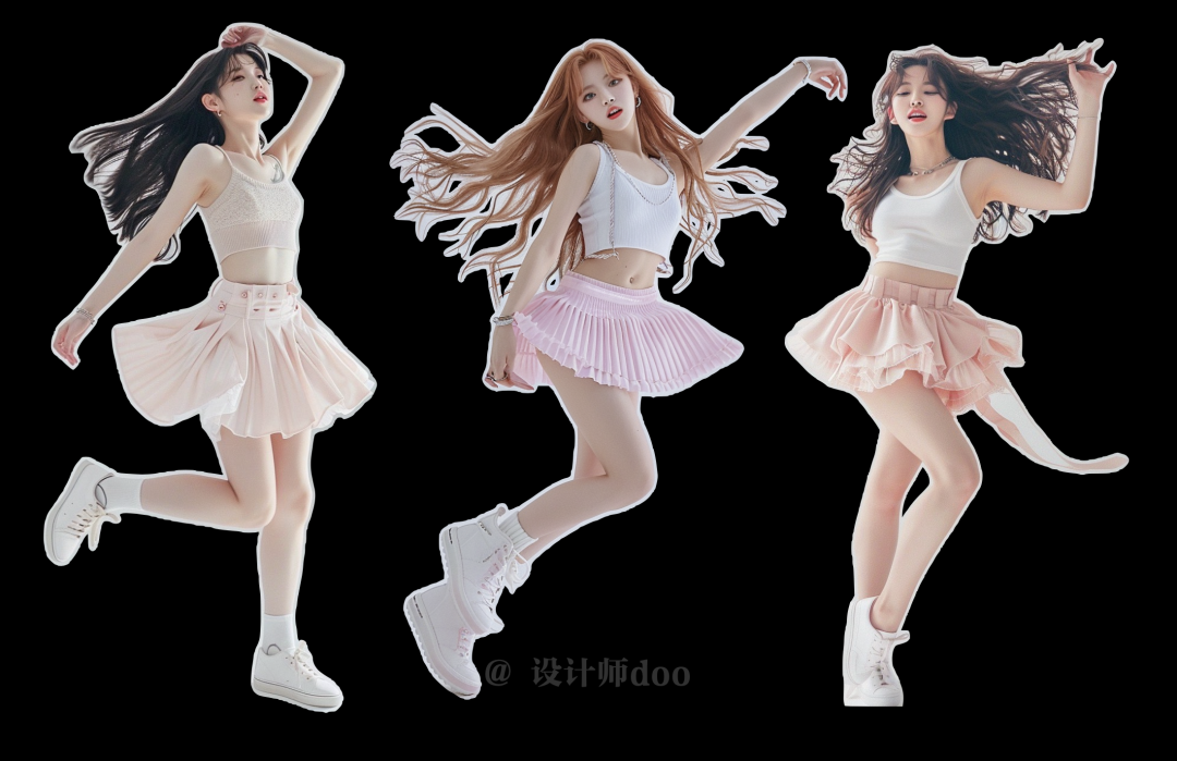 如果我想替换画面中的某个元素,比如我想把下图的灰裙子变成粉裙子。我只需要使用inpaint anything插件,将需要修改的部分选中,然后通过简单的提示词修改,比如“pink skirt(粉裙子)”就可以完成修改。