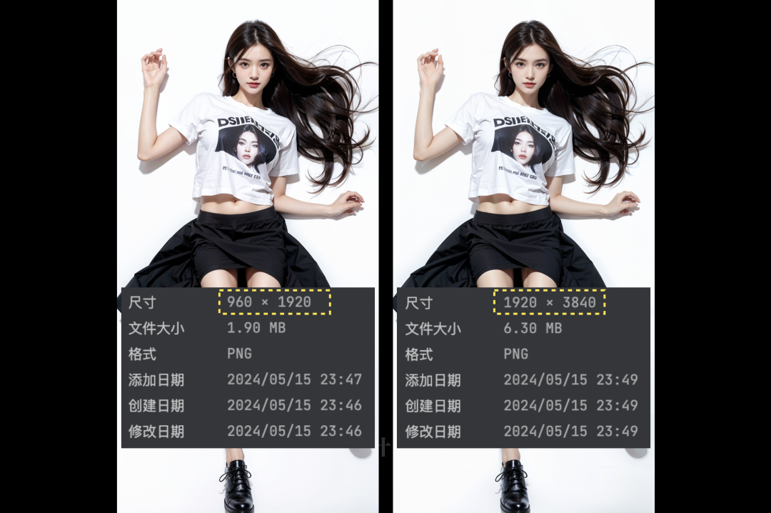 Tiled Diffusion能轻松地(占很少显卡性能)放大图片,最大能直接放大8倍。我使用了2倍放大,已经得到的图片质感已经很不错了。