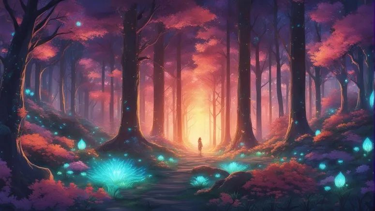 一个简单的想法生成产生巨大影响的图像是很有趣的,在景观中加入超大的蘑菇,正是它们让这张照片变得充满想象力。它可能只是动漫风格中的普通景观,但蘑菇让它看起来像是一个梦幻王国。许许多多的大自然生灵和谐共处的繁华景象,如诗一般美感。