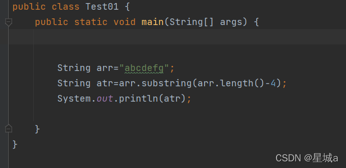 例如:将字符串abcdefg中的后四位defg输出来。 使用方法:数组名.substring(index1,index2)。