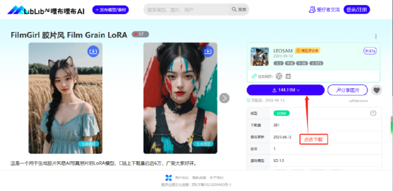 第二个不需要梯子的国内站,哩布哩布AI(https://www.liblibai.com/),但模型没有C站的多。