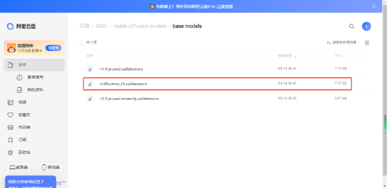 2、将下载好的模型转存到自己的阿里云盘