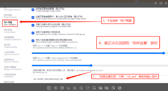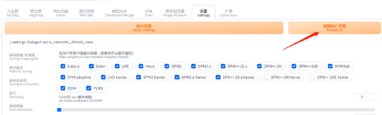 在“设置”标签页中只要修改了界面设置,都需要重新加载webui界面。当我们完成了设置后,点击“重新加载用户界面”按钮: