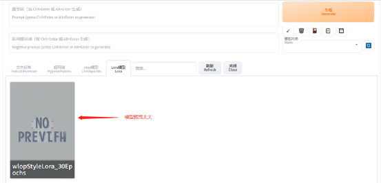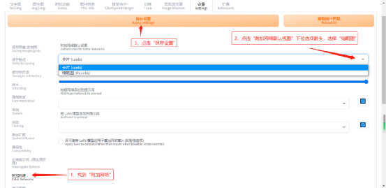 2、缩小“附加网络面板”中Lora等模型的预览大小