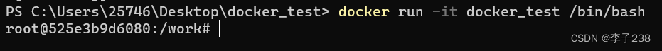 第二行表示在docker容器根目录下创建一个名为work的工作目录。