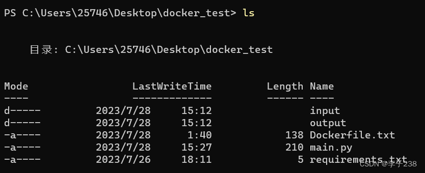 启动容器并进入bash终端后的过程就像是操作Linux命令行(docker容器就像是丐版Linux)。初始位于我们创建的工作目录下。