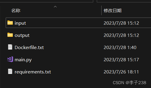 为了在docker容器中运行python程序,首先要编写Dockerfile.txt文件,并以此来制作镜像。一般的我们将Dockerfile文件放置在python项目根目录下,如下图所示: