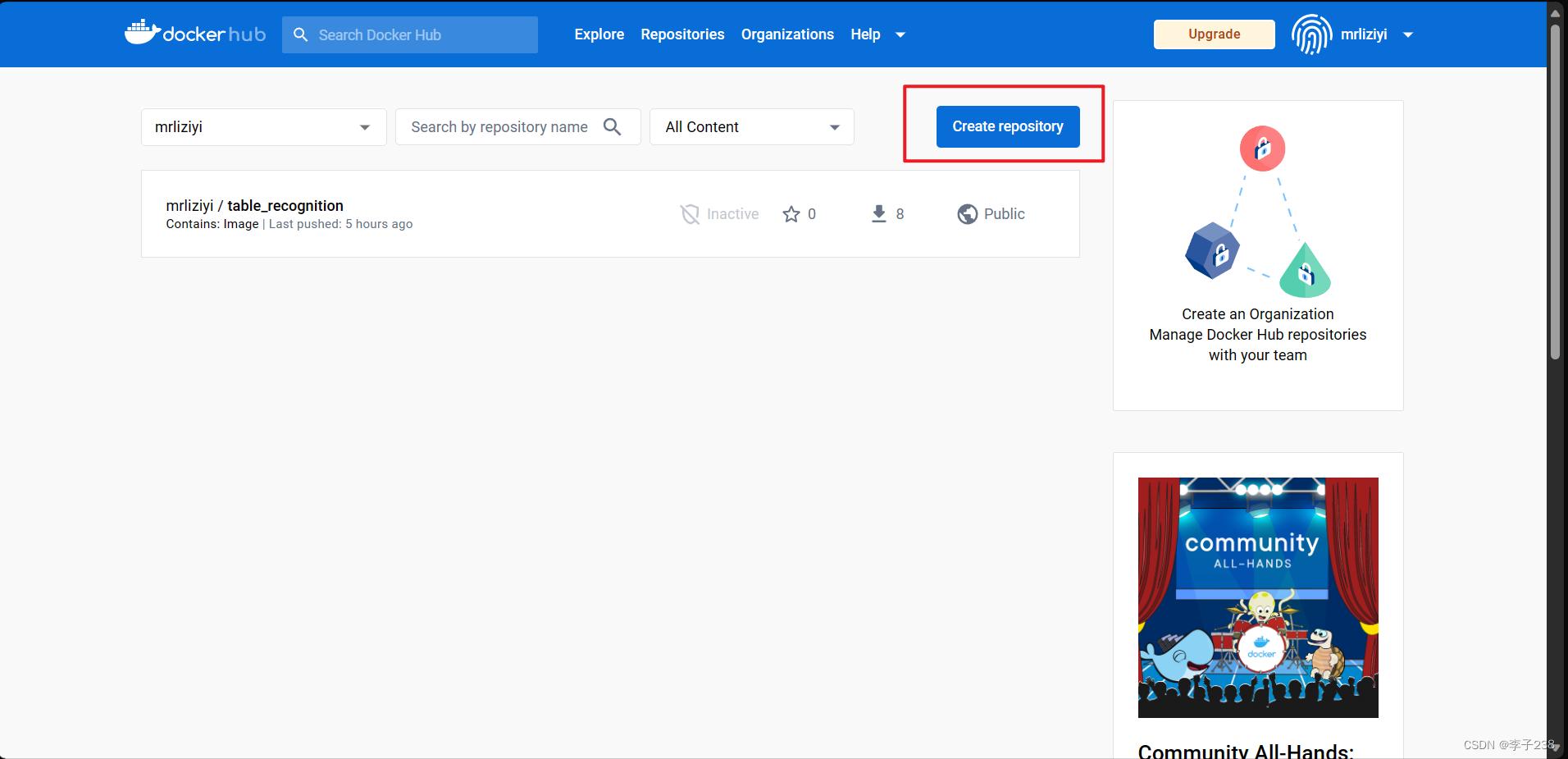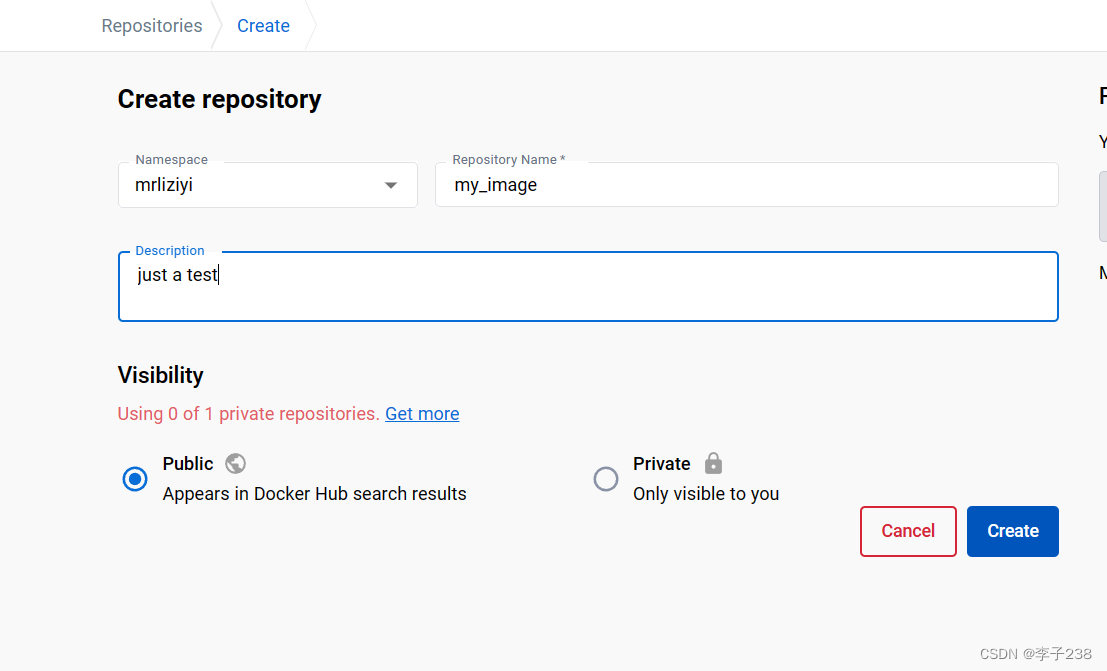 首先要在DockerHub创建一个仓库: