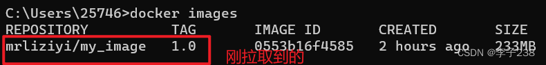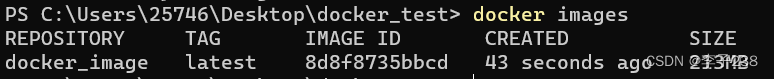 可以使用docker images指令查看存在镜像的信息,可以看到我们新创建的镜像