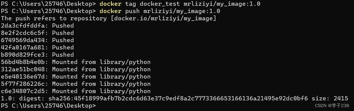 之后使用如下指令上传镜像,请确保你的DockerDesktop处于登录状态: